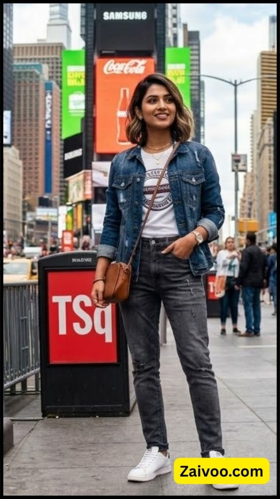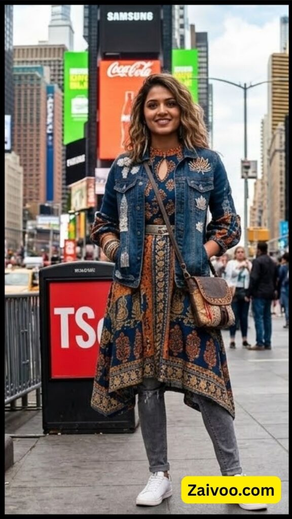 Denim jacket किसी भी simple outfit को stylish बना सकती है। Dress, top या kurti के ऊपर denim jacket पहनने से पूरा look instantly fashionable लगने लगता है।