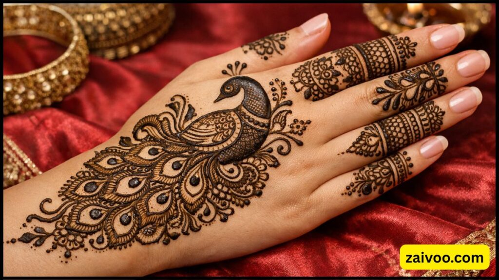 मोर (peacock) की आकृति वाला डिजाइन बहुत ट्रेडिशनल और आकर्षक होता है।