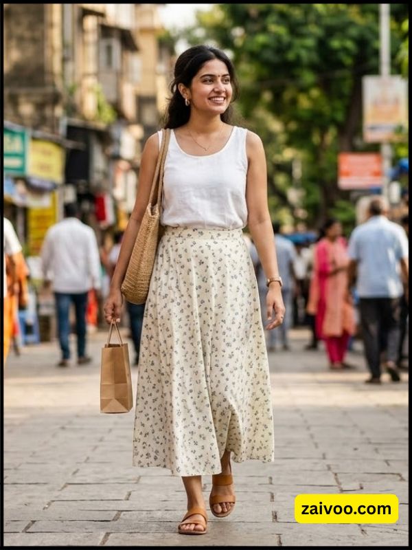 स्कर्ट और टॉप का कॉम्बिनेशन भी गर्मियों के फैशन में काफी ट्रेंड में रहता है। हल्की कॉटन या लिनन स्कर्ट के साथ सादा टॉप पहनने से एक फ्रेश और स्टाइलिश लुक मिलता है। यह ड्रेस खासकर उन महिलाओं को पसंद आती है जो थोड़ा मॉडर्न और कैजुअल स्टाइल पसंद करती हैं। कॉलेज शॉपिंग या दोस्तों के साथ घूमने के लिए यह बहुत अच्छा विकल्प होता है।