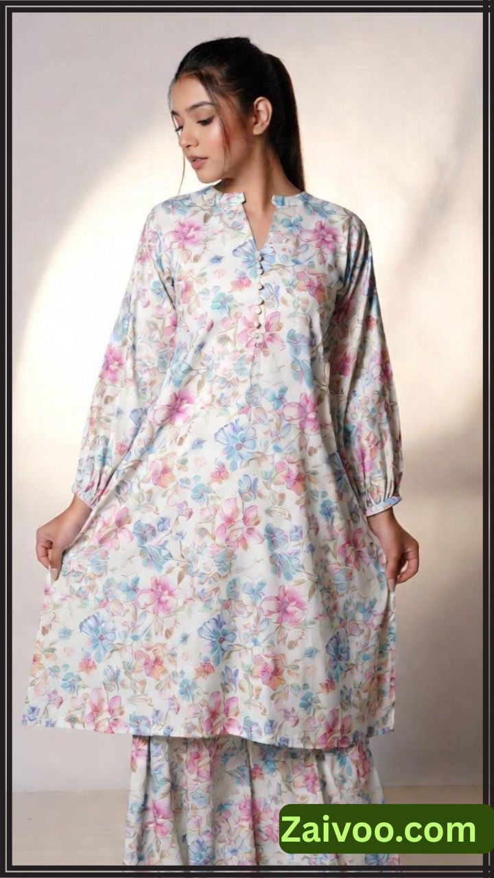1: फ्लोरल लॉन्ग कुर्ती ड्रेस